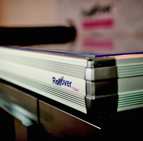 Optimale ergonomiske arbeidsstillinger har vært grunnlaget for utvikling av Rollover. Å kunne komfortabelt betjene maskinen med én hånd, og ha fri tilgang til roller, media og bordplate, resulterer i enkel og effektiv håndtering.